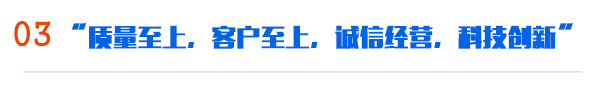 公司一貫奉行“質量至上,客戶至上,誠信經營,科技創(chuàng)新”的經營理念,以好的質量,好的服務,贏得了業(yè)界的一致好評和認可,公司總經理攜全體員工真誠歡迎各界朋友蒞臨公司參觀、指導和洽談業(yè)務。